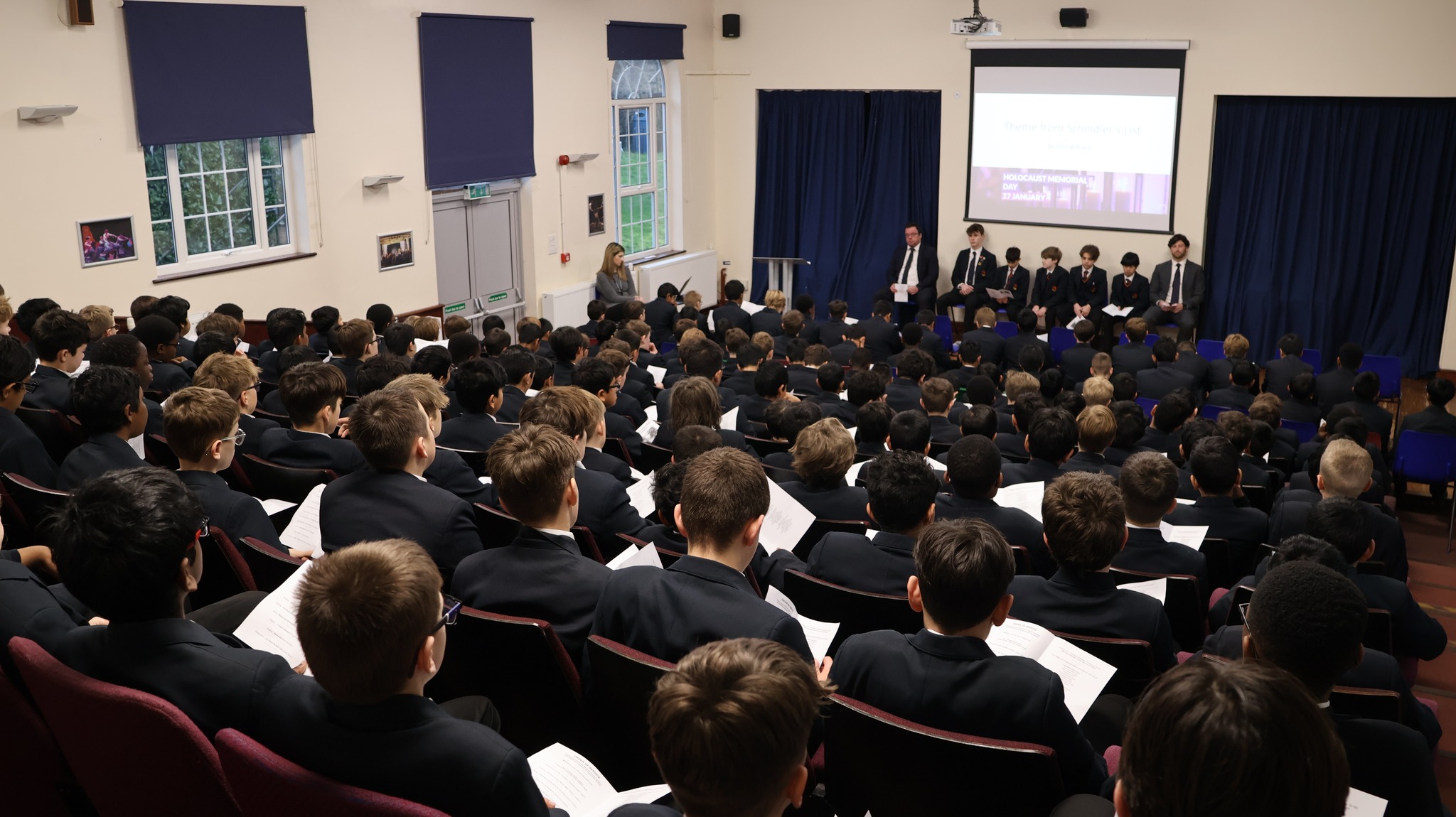 Yesterday (27 January), the whole School once again joined others across the UK and elsewhere to mark the anniversary of the liberation of Auschwitz-Birkenau, the largest Nazi death camp. This is an annual memorial day which is also observed by the School each year, to remember the six million Jewish men, women and children murdered during the Holocaust, alongside the millions of other people killed under Nazi persecution and in subsequent genocides in Cambodia, Rwanda, Bosnia and Darfur.